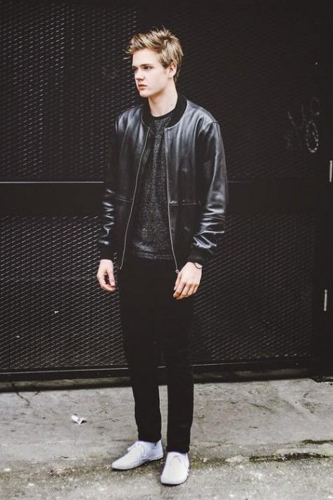 Da không phải lúc nào cũng đi liền với áo khoác biker, những chiếc bomber da mang lại hiệu ứng thời trang không thua kém biker, thậm chí còn tạo nên sự trẻ trung, năng động và biến hóa linh hoạt hơn rất nhiều. Nếu bạn thích phong cách hiền lành, nam tính của những anh chàng sinh viên đại học, hãy chọn bomber. Bomber thường có thiết kế suôn, trơn và ít chi tiết, chính vì vậy lại càng làm nổi bật bề mặt chất liệu. Bạn không cần quan tâm quá nhiều đến kiểu dáng mà nên chú ý đến màu sắc, loại da, họa tiết da và sự phối hợp của da với những chất liệu khác. Có khá nhiều lựa chọn dành cho bạn: bomber da, bomber phối tay áo da, bomber da phối thun... Tốt nhất nên đi với sneaker, mũ lưỡi trai, t-shirt, quần jeans hoặc jogger, bạn sẽ trông vô cùng khỏe khoắn và hiện đại.