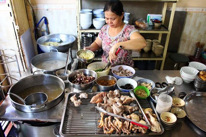 Cháo lòng Cô Ba nằm trên đường Nguyễn Huy Tự, quận 1 (gần khu vực chợ Đa Kao). Chủ quán cho biết đã bán ở đây gần 30 năm.