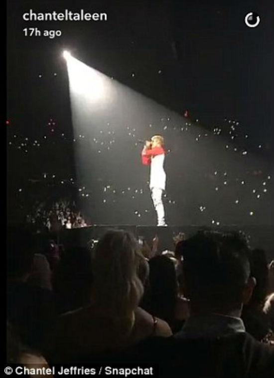 Chantel đã chia sẻ một video trên Snapchat khi cô hát và nhảy theo bài hát của Justin ở ngay hàng ghế đầu trong buổi diễn từ Purpose Tour của anh chàng.
