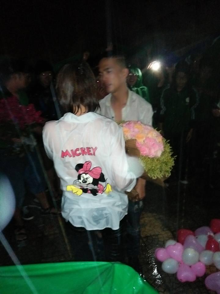 Dưới trời mưa, cả một đội anh em hùng hậu trang bị bóng bay, nến và những thứ cần thiết, loa đài, để tổ chức một mà cầu hôn cực kì hoành tráng.