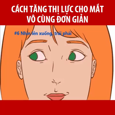 Với bài tập này, bạn giữ nguyên đầu sau đó từ từ di chuyển cặp mắt sang bên phải, trái rồi lên, xuống. Làm động tác khoảng 10 lần. Một ngày làm từ 2 đến 3 lần bạn sẽ thấy hiệu quả rõ rệt.