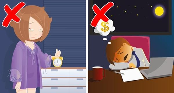 Đi ngủ quá muộn, ngủ không đủ giấc làm chậm quá trình trao đổi chất, tăng tích trữ mỡ thừa. Các chuyên gia dinh dưỡng khuyên bạn nên ngủ đủ 7 - 8 tiếng mỗi đêm.