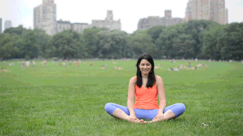 Động tác Ankle-To-Knee: Xếp chân bằng tròn sao cho mắt cá chân phải nằm trên đầu gối trái. Hai tay đặt vào đầu gối và hít sâu. Giữ tư thế trong 3 nhịp thở và đổi bên.