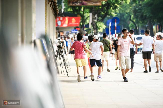 Hà Nội trong miêu tả của rất nhiều người bao giờ mà chẳng là chật hẹp, bon chen, ồn ã với khói bụi còi xe, với toàn người là người. Còn với phố đi bộ thì khác, tuy là cũng đông (điều này rất khó tránh, nhưng nếu bạn tới từ thật sớm, hoặc với nhiều nhóm bạn trẻ thật khuya mới ra đây thì phố đi bộ vắng lắm!), nhưng không gian thoáng đãng, mát mẻ và trong lành hơn rất rất nhiều. Mọi thứ, nói thế nào nhỉ, có chút chậm lại, và không ai muốn vội. Vì người ta tới đây để thư giãn, để tận hưởng một cuối tuần mới mẻ giữa lòng thủ đô mà, chẳng ai vồn vã hay ồn ã làm gì...