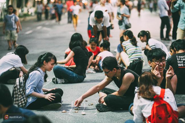 Thế mới nói cứ tới phố đi bộ là kiểu gì cũng gặp hàng loạt những bạn/ nhóm bạn trẻ tự do vận động, vui chơi. À, cả những trò chơi dân gian được các bạn trẻ mang tới đây nữa chứ. Mà cái này thì rõ là một điểm cực kỳ yêu của phố đi bộ rồi!