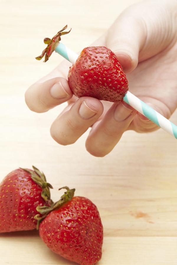 Lấy lõi và cuống dâu tây siêu nhanh với một cái ống hút