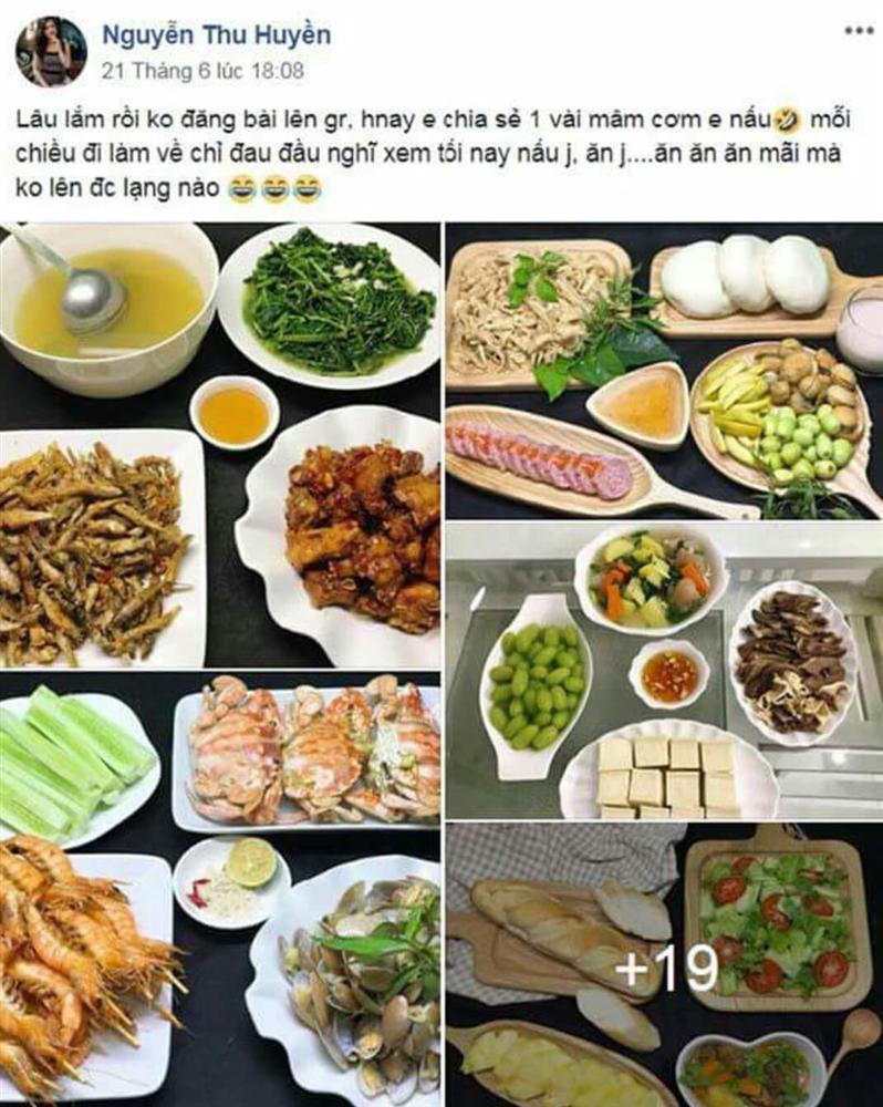 Trong mỗi bữa ăn nhà chị lúc nào cũng có đầy đủ 4 món chính, 1 canh, 1 xào, 1 rau, tráng miệng, nhìn mâm cơm nào của chị cũng đều thơm ngon hấp dẫn.
