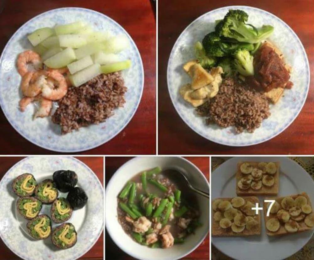 Cũng là thực đơn giảm cân nhưng của chị Nguyễn Thị Thúy đa dạng với nhiều món hơn. Chị vẫn ăn tinh bột nhưng sử dụng chủ yếu là gạo lứt để nấu thành cơm, cháo, các loại súp rau củ, kimbab rau củ…tất cả đều là nguyên liệu sạch và ít calo nhất.