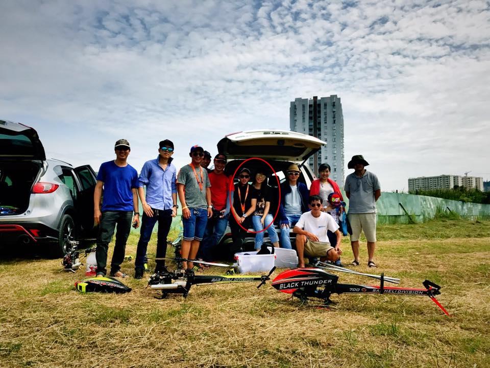 Ngoài niềm đam mê siêu xe, doanh nhân họ Nguyễn cũng có thú vui chơi máy bay mô hình. Trước đó, chân dài họ Đàm lần đầu tiên công khai chia sẻ về hôn phu vào tháng 11/2017 là khoảnh khắc bạn trai đang chăm chú với thú vui này. Cũng trong thời gian đó, doanh nhân phố núi cũng khoe ảnh người yêu tin đồn, dù trong tình trạng "mỗi người một xe".