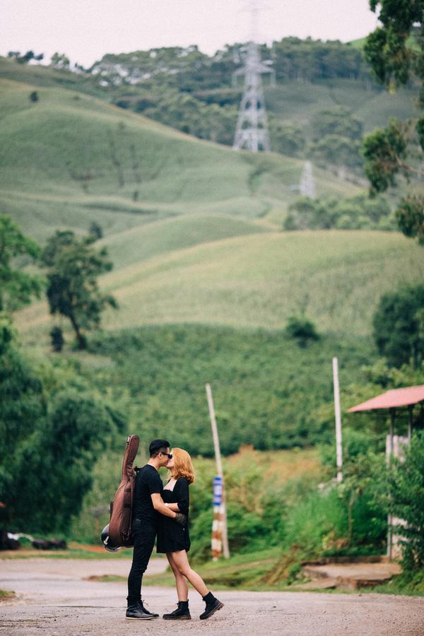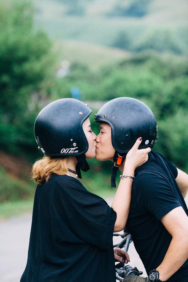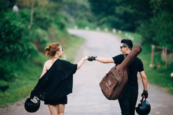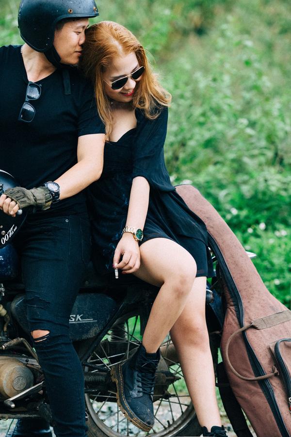 Cô dâu chú rể lựa chọn trang phục cá tính rất hợp với bối cảnh của một bộ ảnh cưới phượt.