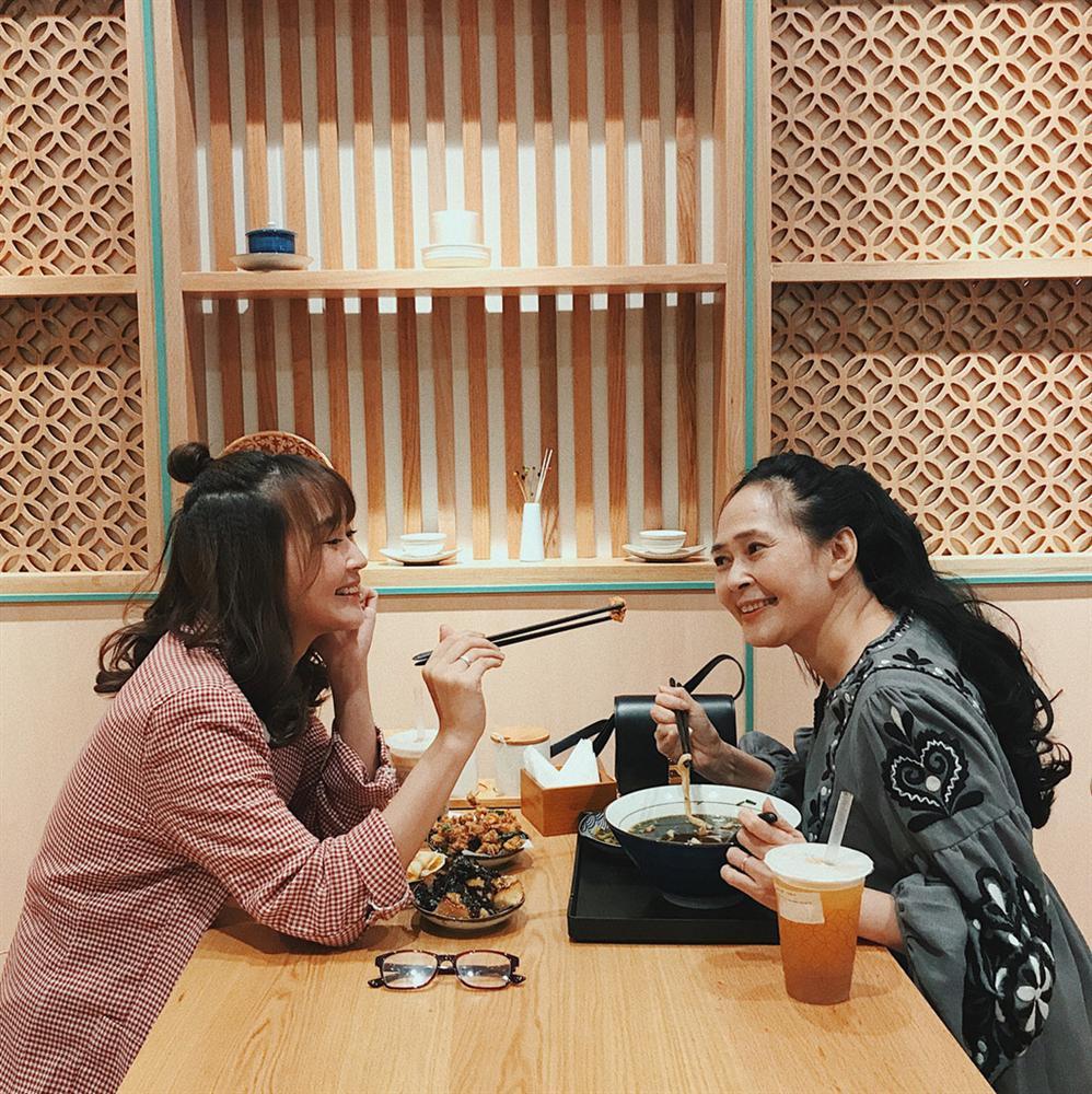 Trâm Anh cũng thường bông đùa rằng nhìn mẹ với mình như hai chị em. Khác với con gái luôn cười tươi mỗi khi chụp hình, mẹ của 9X lại có phần lạnh lùng hơn.