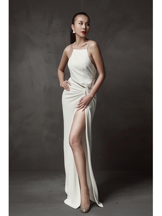 Lợi thế chân dài cũng giúp Minh Triệu ghi điểm khi diện những trang phục sexy, tôn lên vẻ đẹp của đôi chân dài không đối thủ