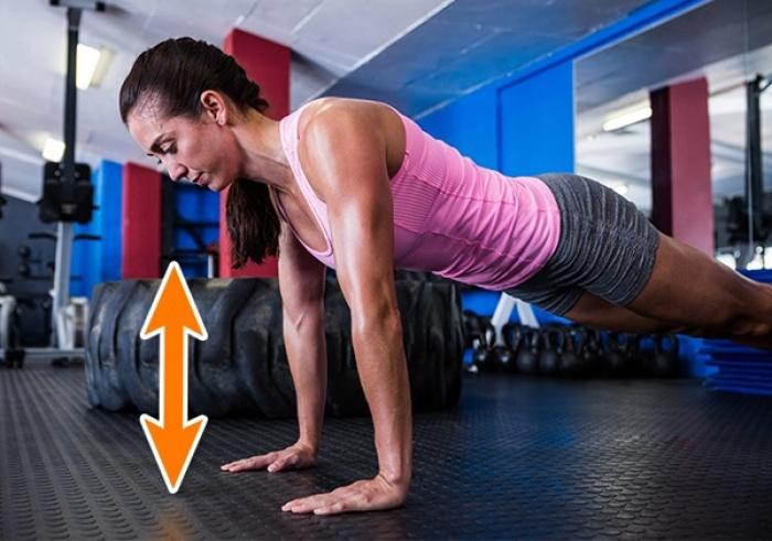 Giữ thẳng lưng, thực hiện động tác chống đẩy 20 lần x 3 hiệp.