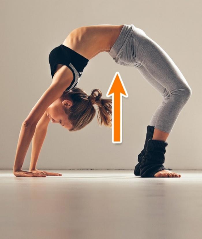 Nằm sấp, hai chân gập về phía mông, hai tay nắm chắc cổ chân. Dùng cơ bụng nâng người và chân lên cao, kéo căng hết mức có thể. Giữ từ 20 đến 60 giây tùy khả năng rồi trở về tư thế chuẩn bị. Lặp lại động tác 20 lần.