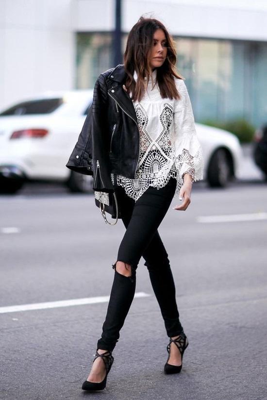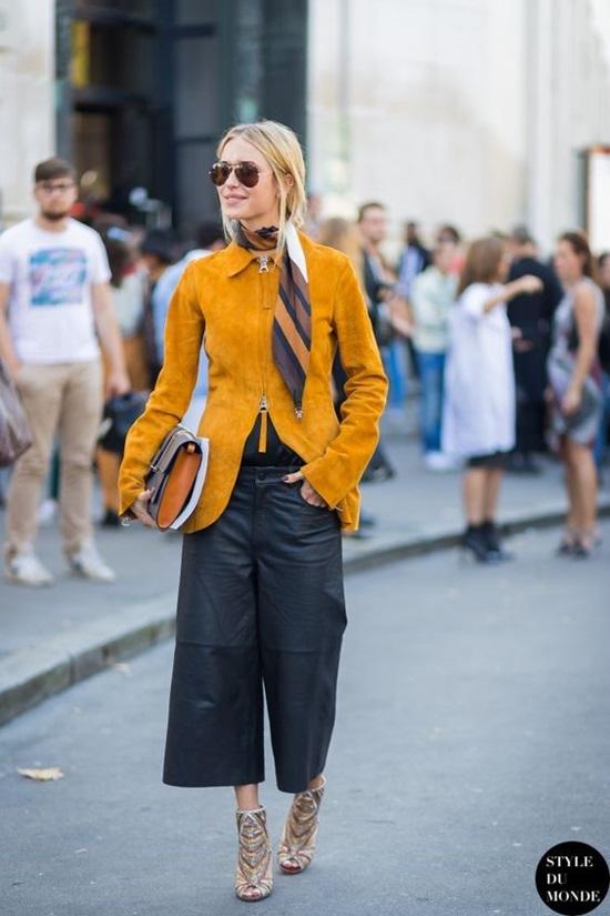 Áo khoác da: Kiểu áo khoác cổ điển này luôn được yêu thích vào mùa thu. Chúng bổ sung cho set đồ thu hoàn hảo và phong cách, mạnh mẽ hơn.