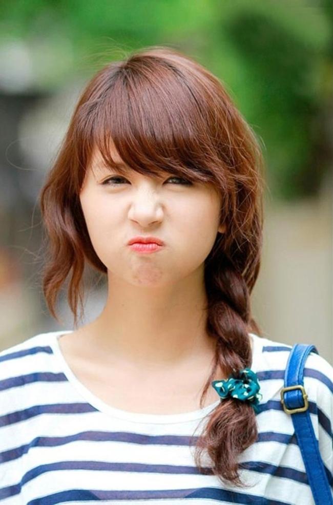 Đây là kiểu tóc đem lại vẻ đẹp ngọt ngào trong trẻo cho các bạn gái, đặc biệt phù hợp với nữ sinh. Phần tóc mái được cắt che đi phần trán giúp gương mặt trong tròn trĩnh và đáng yêu hơn.