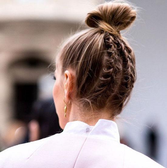 Tóc búi cao tết rãnh phía sau là style giúp cho gương mặt trở nên kiêu kì và sang