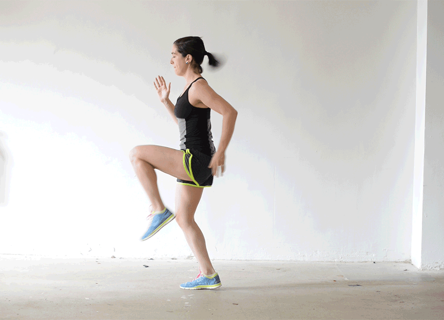 Thực hiện: Co lần lượt từng chân về trước, động tác dứt khoát.