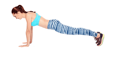 Duỗi chân về sau thành động tác plank, nhưng thay vì tay chống vuông góc thì chống thẳng xuống sàn.
