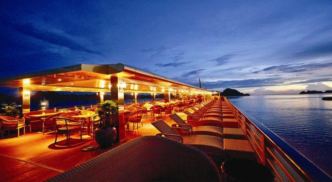 Trong những năm gần đây, loại hình du thuyền khám phá vịnh Hạ Long trở nên khá phổ biến. Du khách sẽ tận hưởng cảm giác ngắm chiều hoàng hôn ở vịnh trên boong tàu giữa mênh mông sóng nước hay đón những tia nắng mặt trời đầu tiên trên mặt biển bao la. Du thuyền có tiện nghi đầy đủ giống một khách sạn thu nhỏ, cũng có phòng riêng, với chăn nệm sạch sẽ, điều hòa, có phòng tắm riêng. Chỉ cần mở cửa sổ ra bạn sẽ thấy nhìn những dãy núi, nước non hùng vĩ. Đêm đến, bạn cũng có thể lên boong tàu ngắm sao trời, ngắm cảnh biển về đêm.