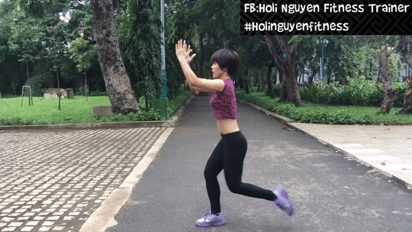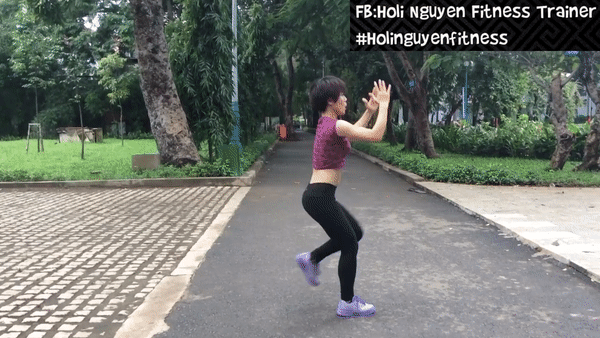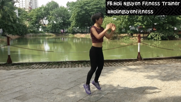 Lưu ý nhảy trên 2 đầu mũi chân, hít thở đều trong cả bài tập.