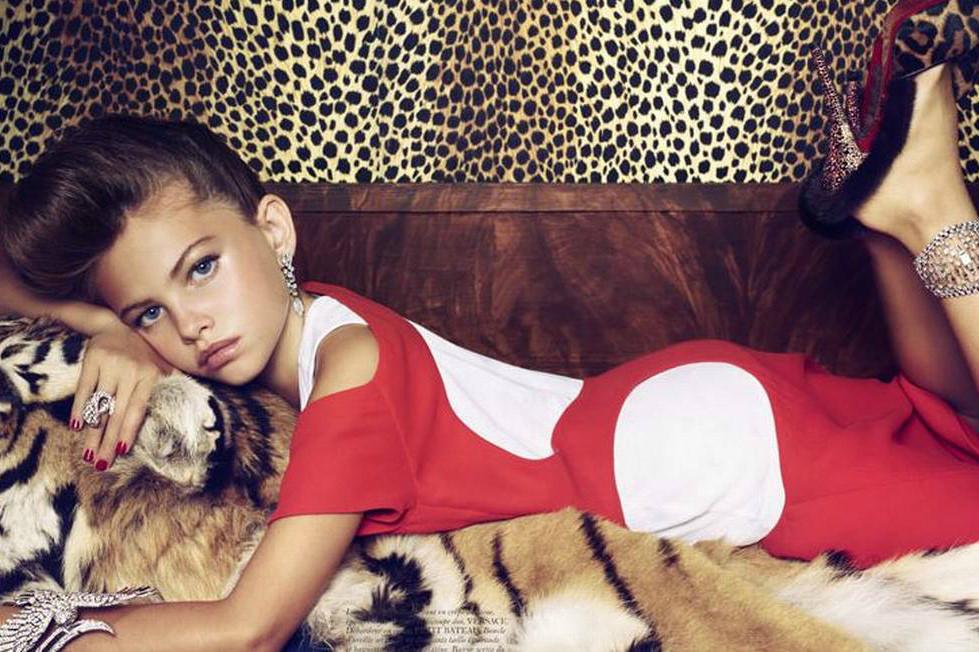 2. Thylane Lena-Rose Blondeau (15 tuổi, Pháp) "ẵm" danh hiệu "cô gái xinh nhất thế giới" khi mới 10 tuổi. Cô trở thành người mẫu từ khi lên 5. Thylane nổi đình đám khi xuất hiện trên Vogue Pháp vào năm 2011, bởi cô là người mẫu trẻ nhất từng xuất hiện tại tạp chí danh giá này. Tuy nhiên, nhiều người cho rằng Thylane còn quá nhỏ để chụp ảnh gợi cảm. Cô hiện đầu quân cho IMG Models, cùng công ty với chị em Gigi - Bella Hadid, Kaia Gerber. Ảnh: Vogue.