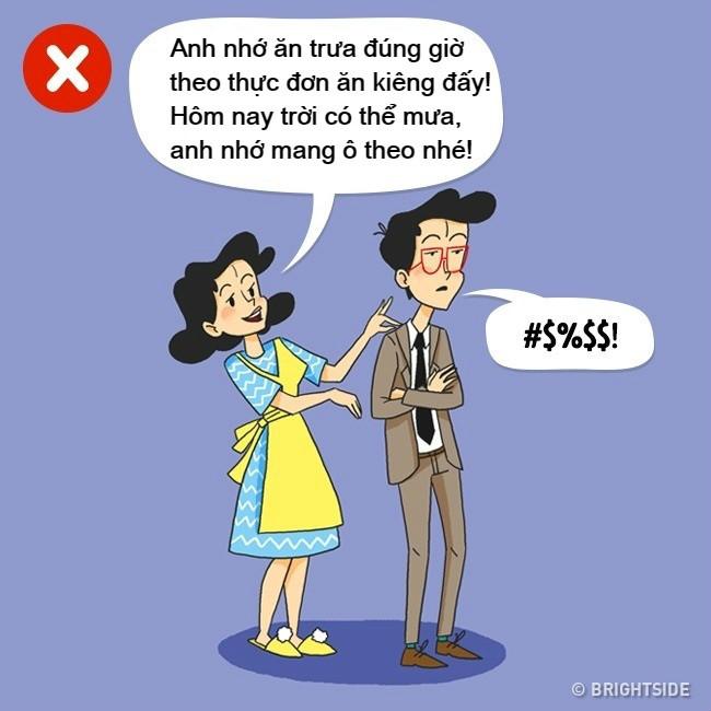 Quan tâm, thấu hiểu là yếu tố rất cần thiết trong một mối quan hệ tình cảm. Tuy nhiên, đừng để ý, nhắc nhở nửa kia những điều nhỏ nhặt trong cuộc sống, bởi họ cũng là người trưởng thành, đã biết tự lo cho bản thân. Bạn là người yêu, vợ/chồng, chứ không phải là các ông bố, bà mẹ của đối phương.