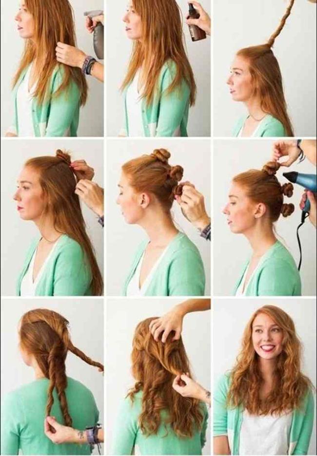 Đầu tiên, bạn bôi gel giữ dáng lên tóc, búi tóc lại và để như thế khoảng vài giờ. Sau khi tháo búi tóc ra, bạn sẽ có những lọn tóc xoăn theo trật tự, bóng đẹp mà không mất thời gian tạo kiểu.