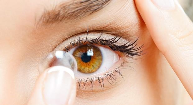 Đeo kính áp tròng: Khi sử dụng kính áp tròng, bạn thường kéo mạnh vùng da mỏng, nhạy cảm quanh mắt. Lâu ngày, thói quen này tạo nên nếp nhăn khu vực quanh mắt. Ảnh: Goodhousekeeping.