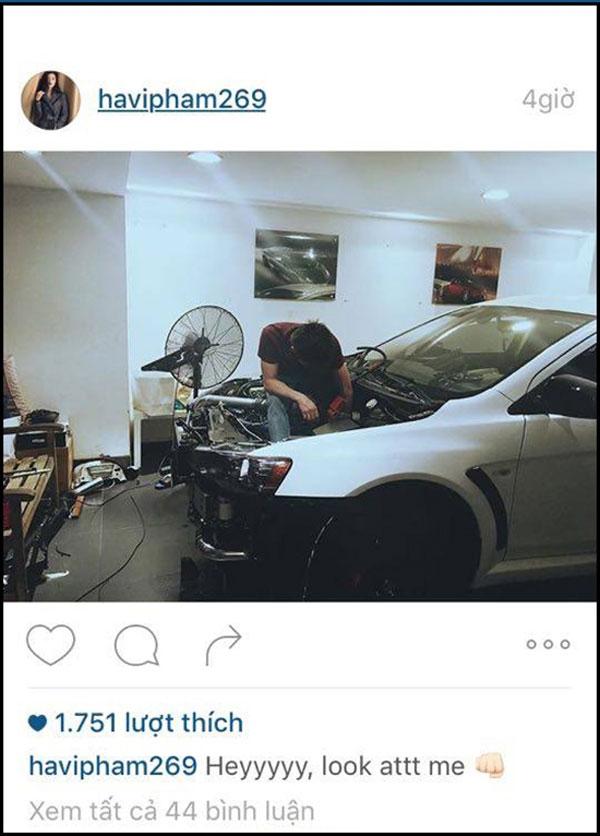 23/12/2015 siêu mẫu Hạ Vi vừa đăng tải lên instagram hình ảnh một người đàn ông đang cặm cụi sữa chữa trên một chiếc xế hộp