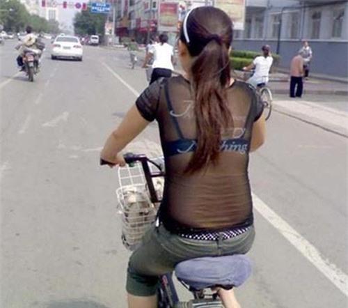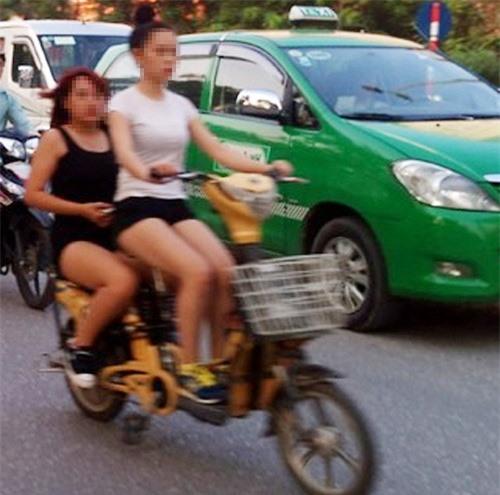 Quần siêu ngắn, áo hở bụng cưỡi xe đạp điện đang là hình ảnh