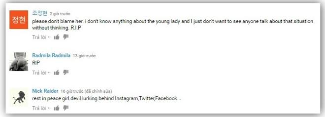 Một số ý kiến của dân mạng trước cái chết của cô gái đến từ Nga. Ảnh chụp màn hình.