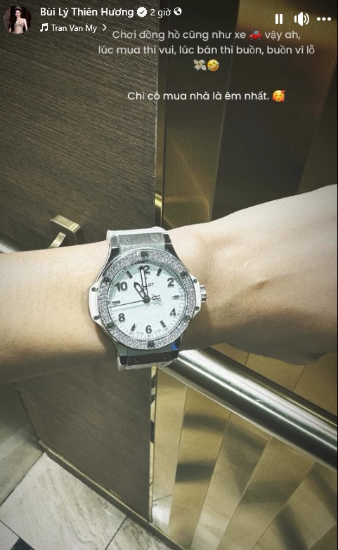 Chân dài 9x sở hữu loạt túi hiệu, giày dép đến từ các thương hiệu xa xỉ như Hermès, Dior, Louis Vuittons, Chanel... Ngoài ra, cô còn có thú chơi đồng hồ đắt đỏ. Thiên Hương còn than thở: "Chơi đồng hồ cũng như xe vậy, lúc mua thì vui, lúc bán thì buồn, buồn vì lỗ. Chỉ có mùa nhà êm nhất".