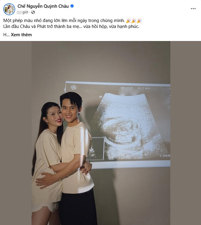Mới đây, Á hậu Chế Nguyễn Quỳnh Châu chia sẻ hình ảnh mới gây chú ý. Theo đó, trên trang cá nhân, người đẹp khoe hình ảnh đi siêu âm cùng ông xã kèm dòng trạng thái: "Một phép màu nhỏ đang lớn lên mỗi ngày trong chúng mình. Lần đầu Châu và Phát trở thành ba mẹ… vừa hồi hộp, vừa hạnh phúc.