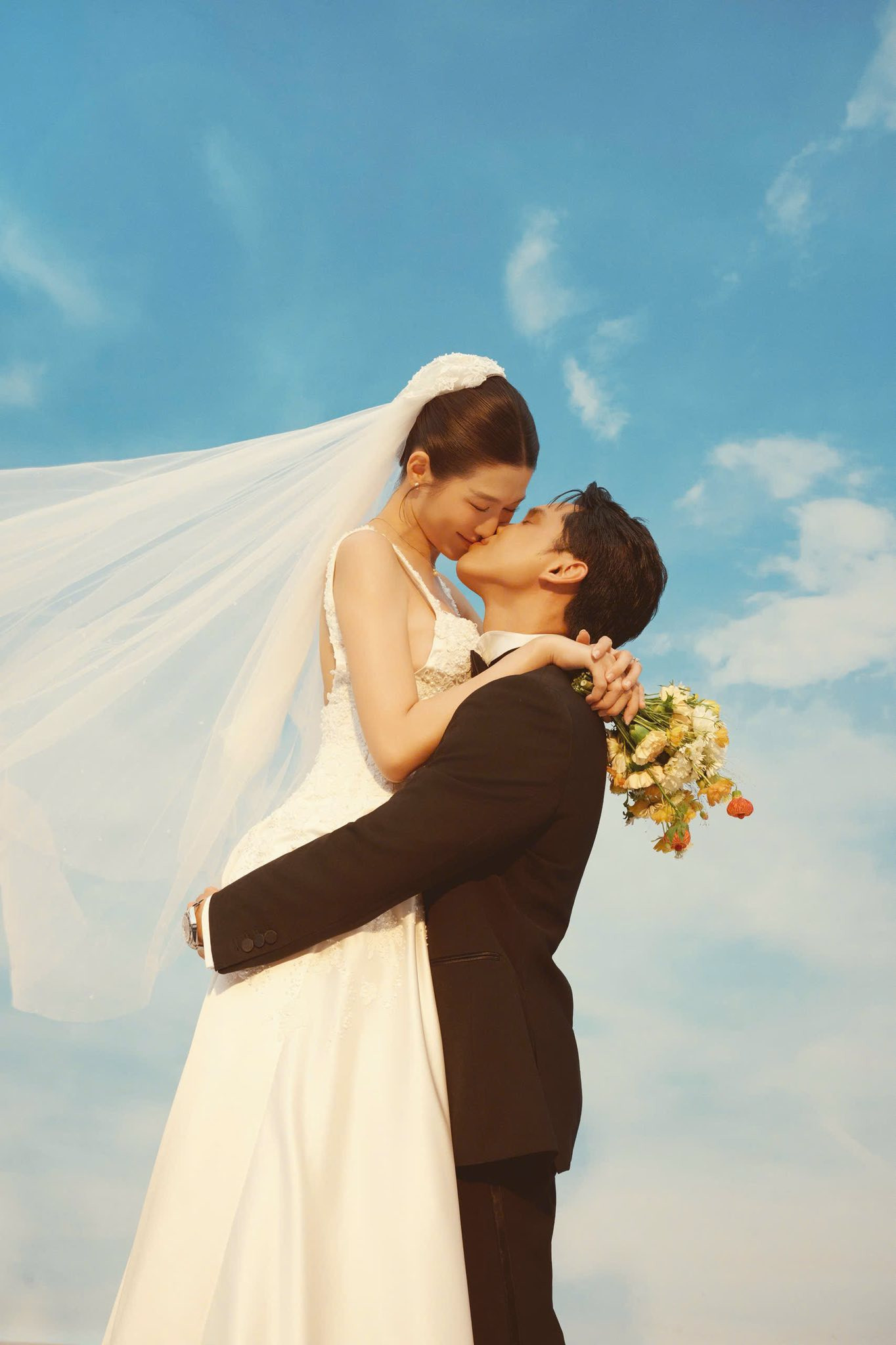 Xuất hiện trong ngày trọng đại, cô dâu diện đầm cưới phom dáng cúp ngực cũng bị các thánh soi phát hiện vòng hai lùm lùm nghi có tin vui. Đặc biệt, trong những bức ảnh chụp góc nghiêng vòng hai càng nhô cao thấy rõ. Cặp đôi vướng nghi vấn đã có tin vui.
