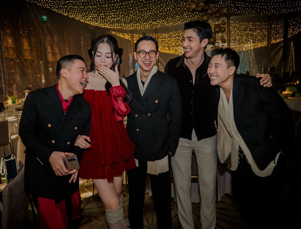 Xuất hiện trong cùng một khung hình, dàn sao Việt sang chảnh hết tầm, tạo dáng chụp hình như poster phim. Đáng chú ý chính là Á hậu Phương Nga. Người đẹp lựa chọn thiết kế đầm liền màu đỏ có phom dáng rộng khiến dân tình dấy lên nghi vấn cô đang có tin vui. Không những thế, bà xã Bình An cũng được nhận xét trông gương mặt đầy đặn, có da có thịt hơn trước.