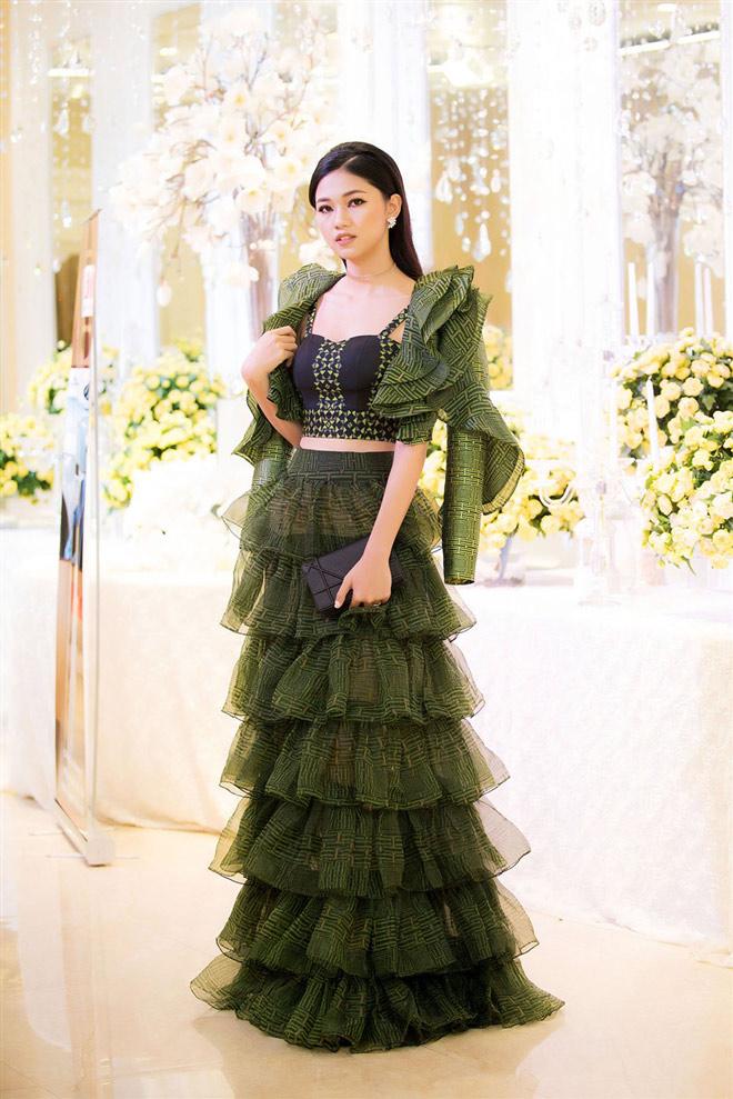 Huyền My xuất hiện rạng rỡ như hoa với thiết kế váy trễ vai chất liệu ren đẹp mong manh. Đôi bông tai tua rua hot trend khiến cô nàng càng trở nên ấn tượng, nổi bật.