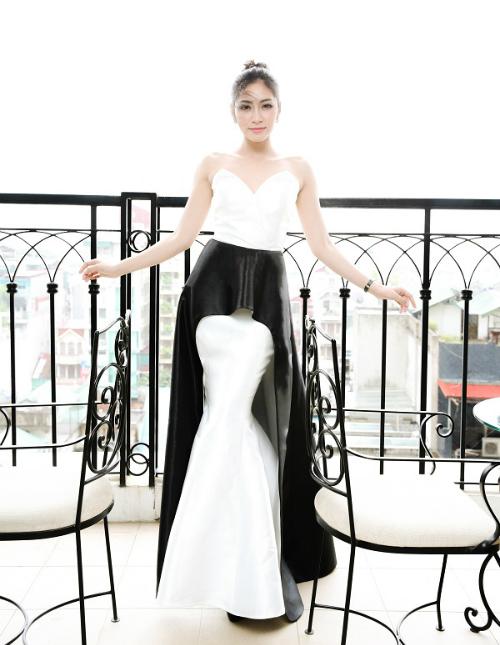 Hoa hậu Đại dương Việt Nam 2014 Đặng Thu Thảo đẹp tinh tế trong thiết kế cúp ngực màu đen, trắng.