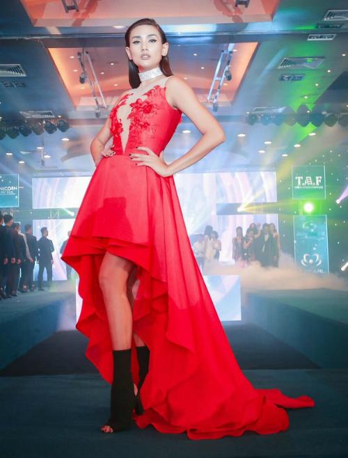 Cựu mẫu Võ Hoàng Yến nổi bật với chiếc đầm màu đỏ của NTK Tuyết Lê.