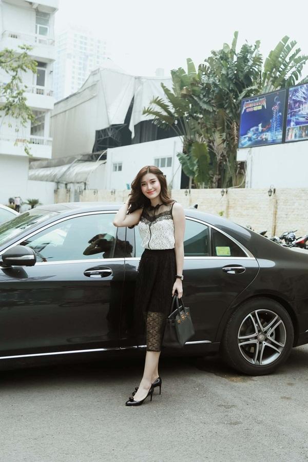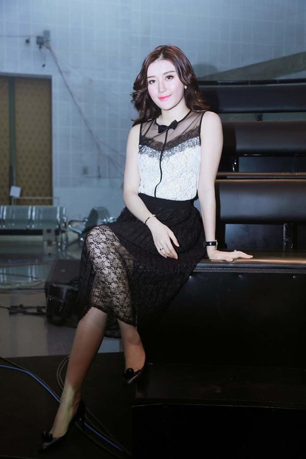 Á hậu Huyền My vẫn vô cùng rạng rỡ và xinh đẹp. Cô diện một bộ váy chất liệu ren