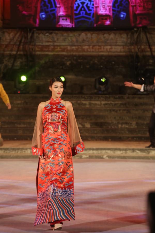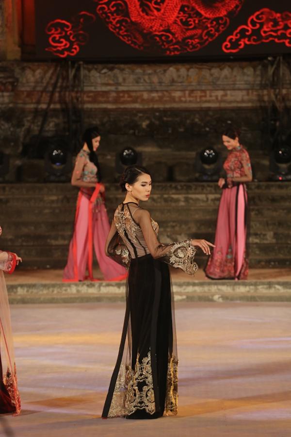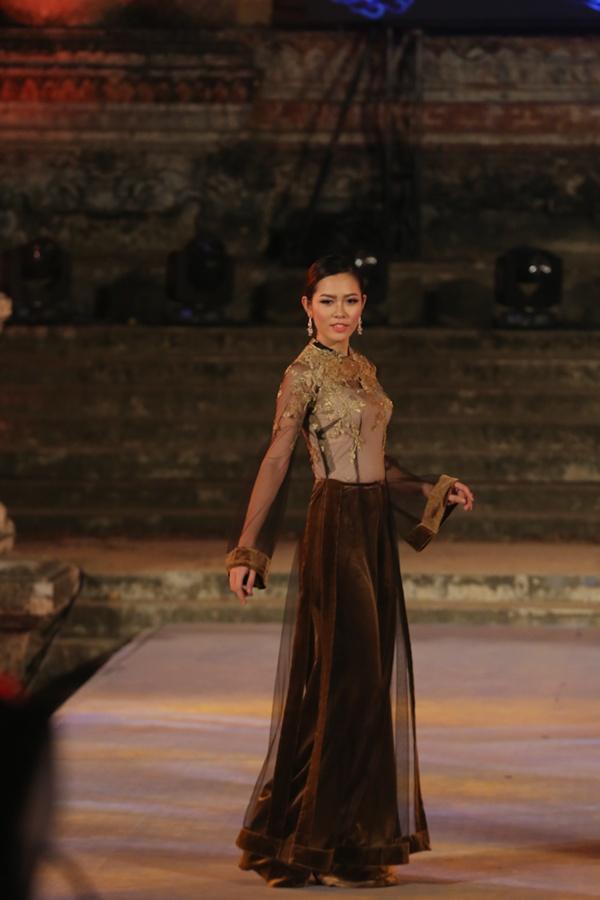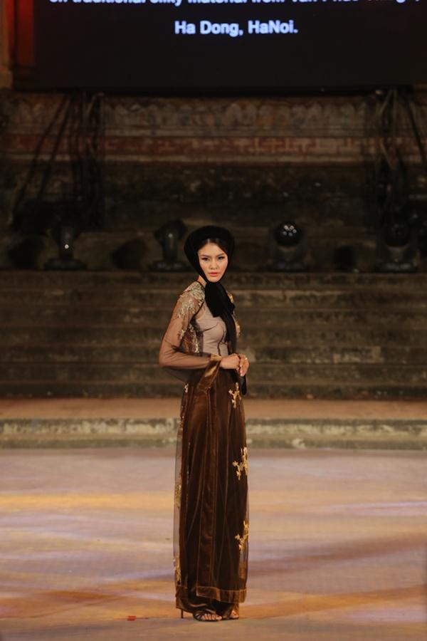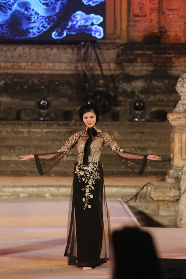 Với những gam màu đen, đỏ, xanh lục, vàng trầm đc phối với nhau tạo nên cac hoạ tiết rât độc đáo. Chiếc khăn đội dầu và dải lụa là điểm nhấn cho ta hồi tưởng tới hình anh của các cô gái kinh kì thời xưa. Bên cạnh đó chất liệu lứoi mỏng se tôn nên vẻ gợi cảm, mềm mại của người con gái Việt Nam. Chắc chắn bộ sưu tập Non Thiêng đã thoả lòng người yêu thời trang áo dài Việt Nam.