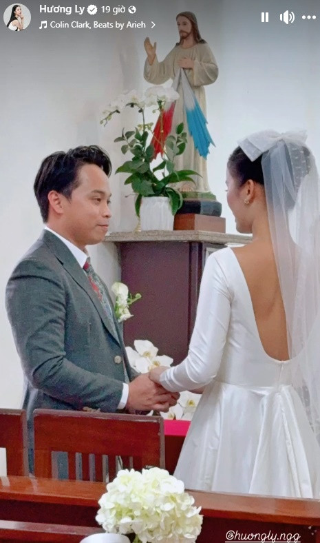 Mới đây, trên trang cá nhân, Á hậu Hương Ly chia sẻ hình ảnh trong lễ thề nguyện cùng chú rể Tùng Anh.