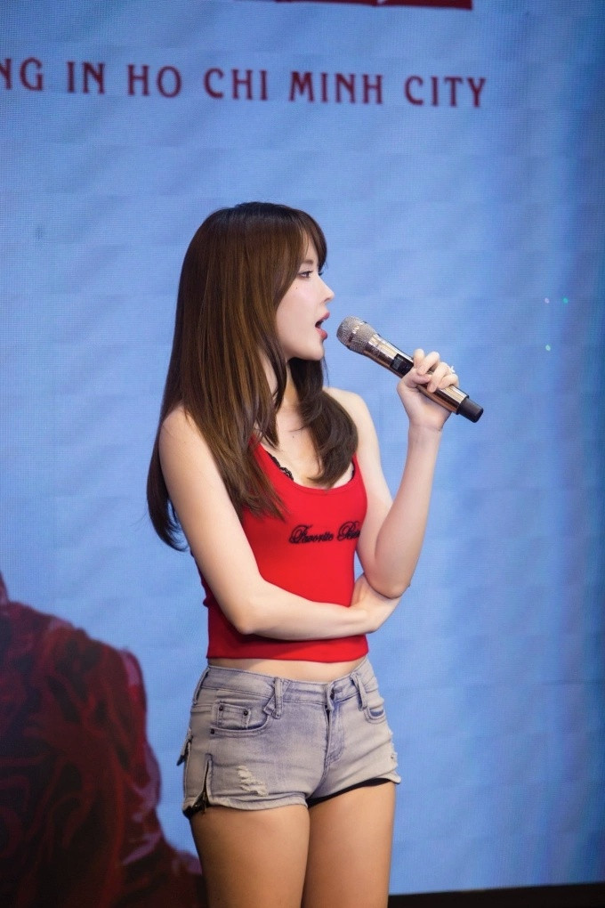 Top sao mặc xấu tuần qua còn gọi tên Thiều Bảo Trâm. Nữ ca sĩ diện áo hai dây phối với quần short ngắn cũn cỡn như trang phục dạo biển, được cho là không phù hợp trong buổi giao lưu với người hâm mộ.