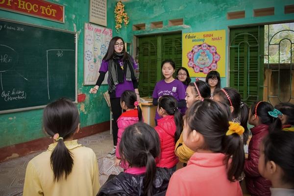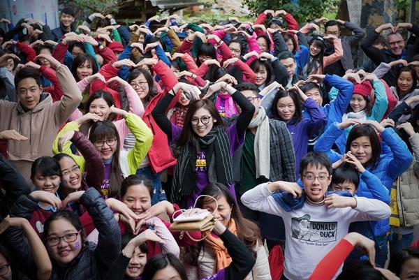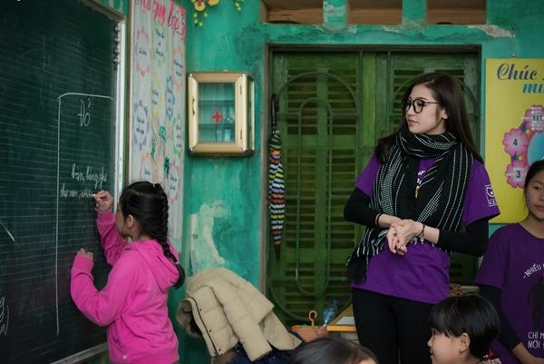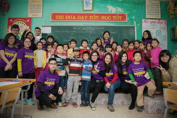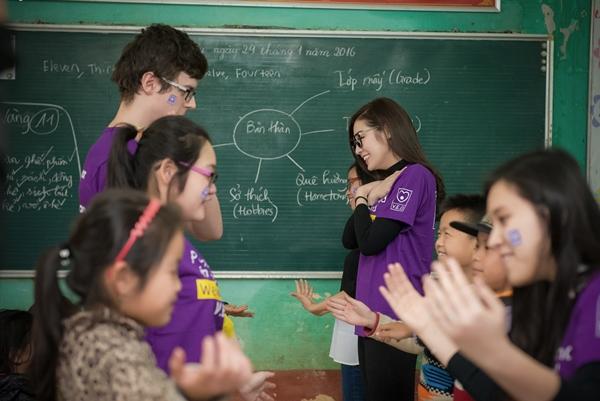 Á hậu cùng các tình nguyện viên ghi lại khoảnh khắc ý nghĩa bên những học sinh nơi đây.