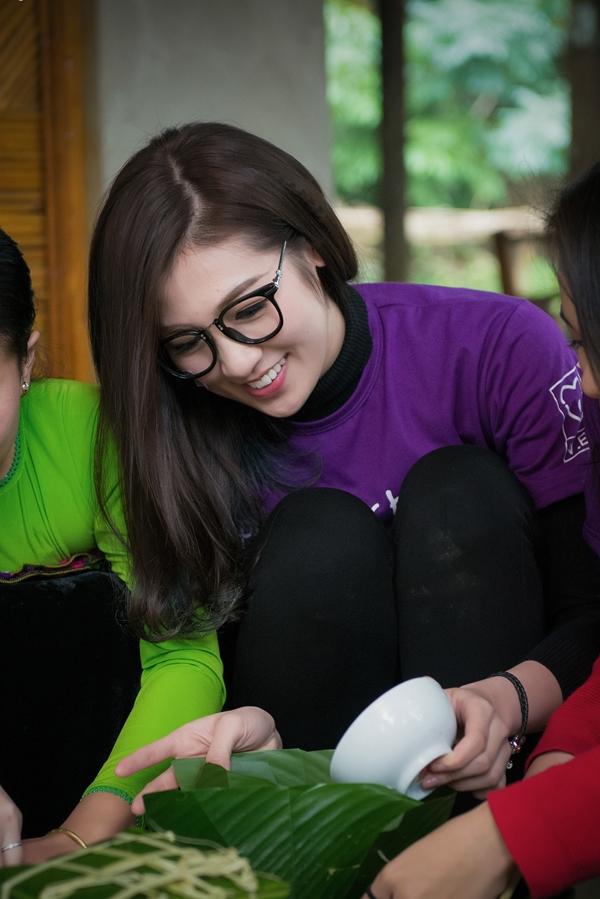 Á hậu Dương Tú Anh như một sinh viên bình dị, thân thiện và cởi mở với các bạn tình nguyện viên trong đoàn. Hoạt động mà người đẹp cho là thú vị và ý nghĩa nhất là việc gói và nấu bánh chưng cùng các bạn Tình nguyện viên trong đoàn thiện nguyện.
