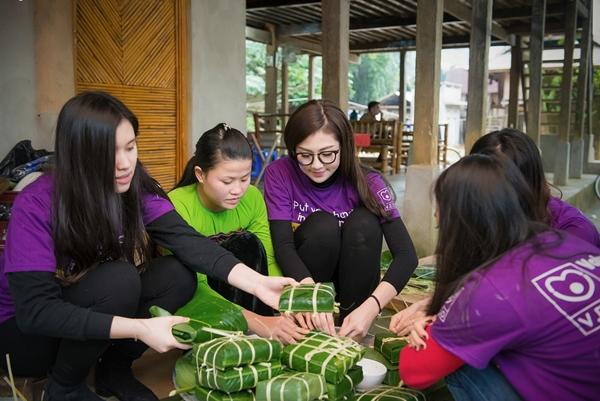 Á hậu Dương Tú Anh được nhiều bạn trẻ biết đến bởi sự tích cực tham gia các hoạt động tình nguyện từ khắp mọi miền Tổ quốc. Vừa mới đây, người đẹp đã cùng hơn 150 bạn Tình nguyện viên đến Bản Lác 2 – Mai Châu tham gia chương trình “Tết về bản em” với hoạt động gói bánh chưng tặng cho các hộ gia đình khó khăn.