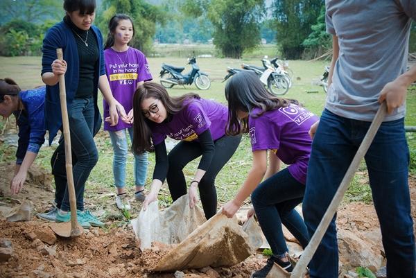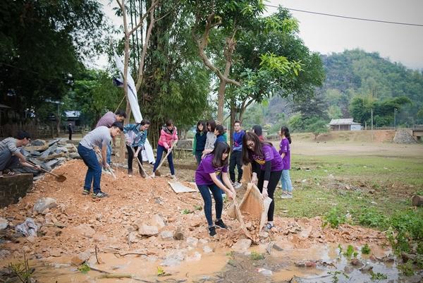 Tú Anh cùng các tình nguyện viên khác như san đất, hỗ trợ cải thiện đường xá,