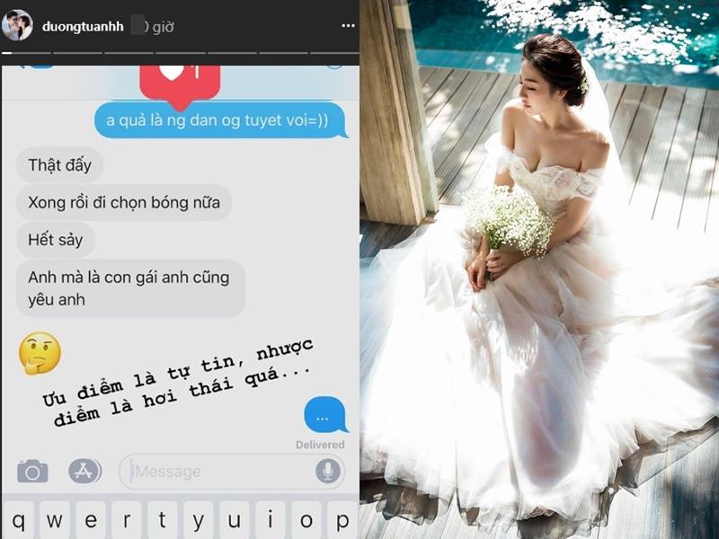 Giữa thời điểm khoảnh khắc ngọt ngào của cặp tình nhân ngôi sao vẫn là chủ đề nóng, Tú Anh lại gây sốt khi tiết lộ thêm về tính cách của chồng sắp cưới. Theo đó, nàng hậu họ Dương đã chia sẻ bức ảnh chụp tin nhắn với bạn trai. Trong đoạn hội thoại, cặp đôi đã liên tục dành cho nhau những lời hoa mỹ.