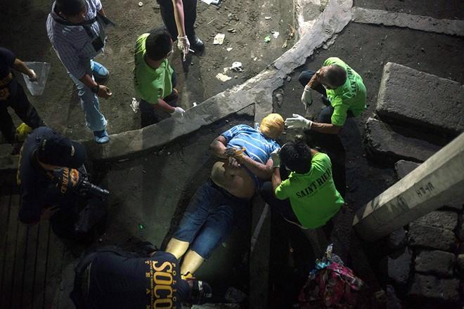 Jennilyn Olaryres ôm xác chồng mình, Michael Siaron, một lái xe xích lô bị cáo buộc buôn bán ma túy đã bị giết chết vào tháng 7 năm ngoái ở thành phố Pasay, Manila. Bức ảnh chụp lại cảnh tượng này thu hút sự chú ý của cộng đồng quốc tế và được nhiều tờ báo lớn trên thế giới đăng tải. Ảnh: Inquirer.
