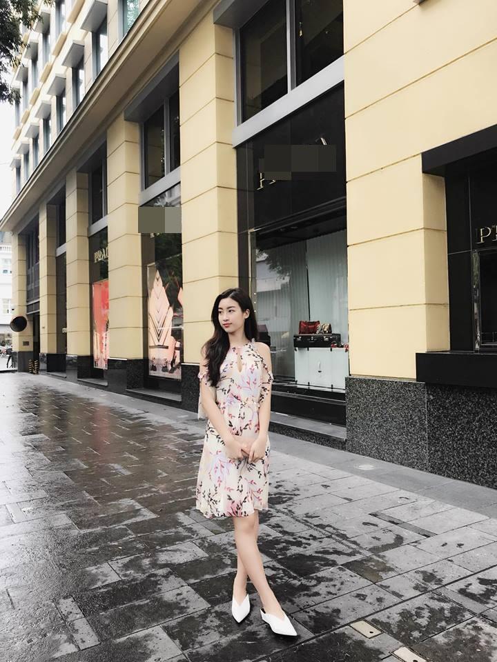 Đỗ Mỹ Linh nữ tính cùng váy khoét vai họa tiết hoa nhí.